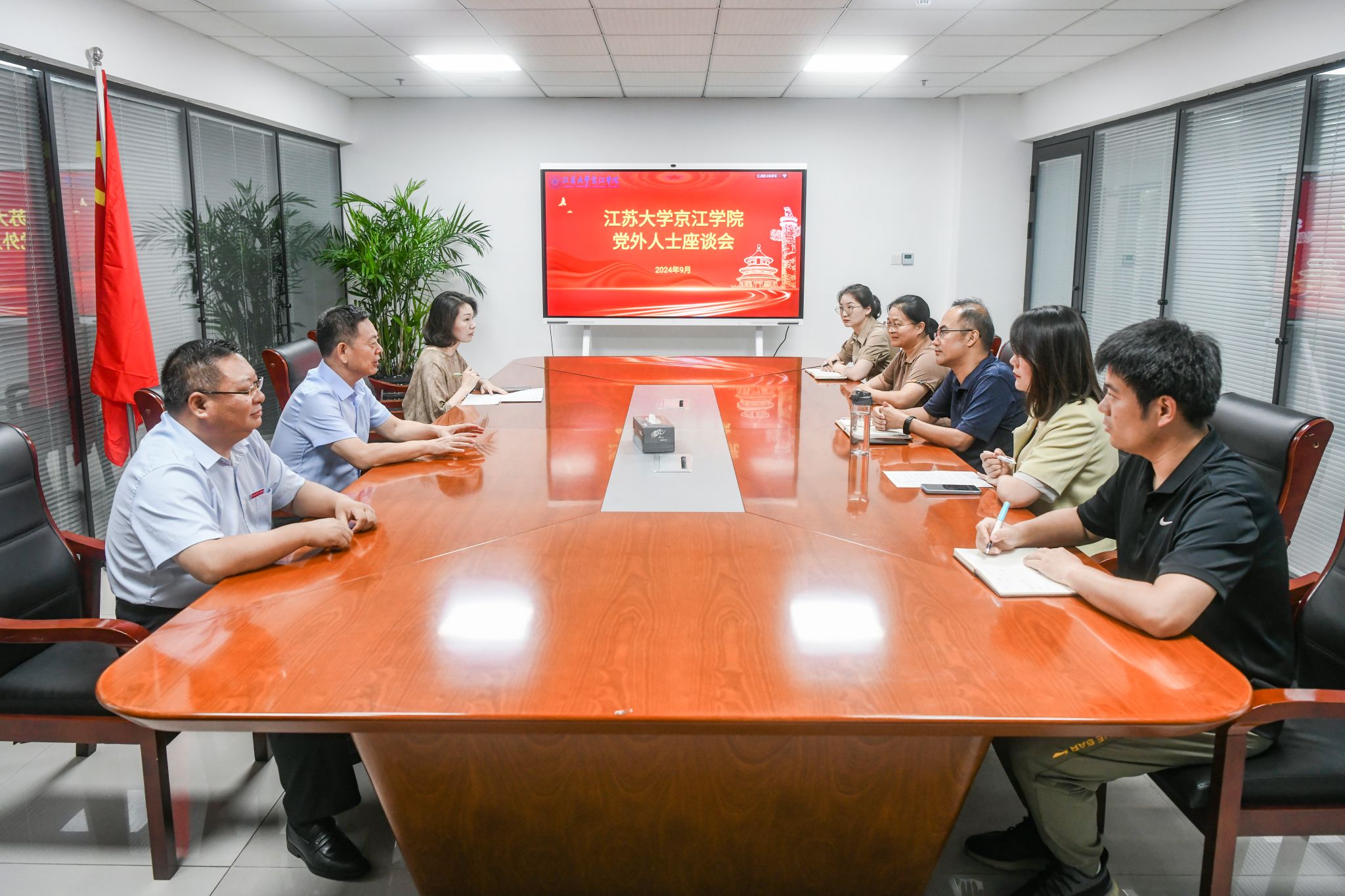 为深入贯彻落实习近平总书记关于教育工作的重要论述精神,大力弘扬教育家精神,加快建设教育强国,9月10日,江苏大学京江学院在行政楼306会议室召开了党外人士座谈会。京江学院党委书记崔金贵、院长杜道林、副院长范艳华、相关职能部门负责人、京江学院党外代表人士参加座谈会。会议由崔金贵主持。