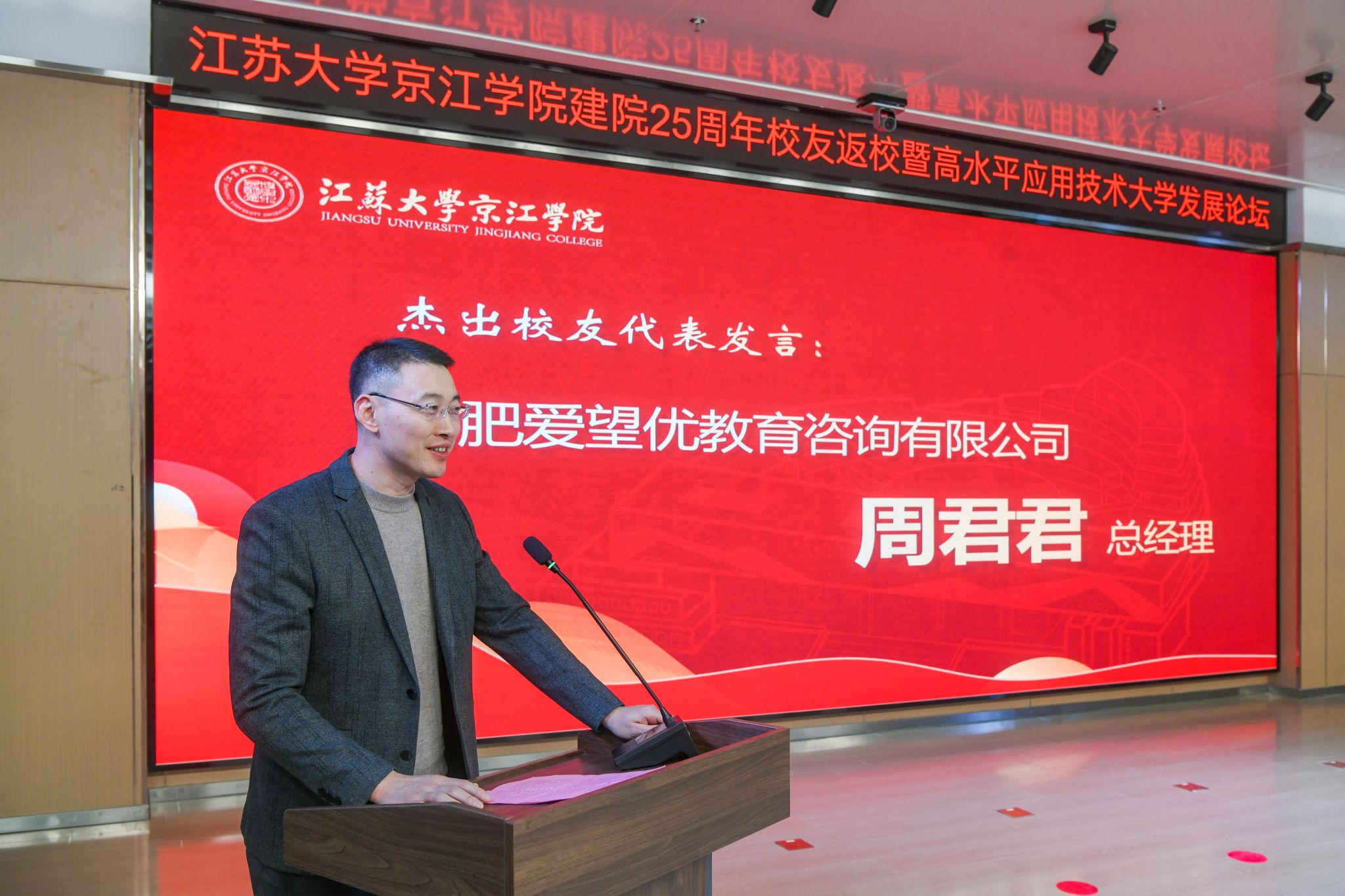 校友代表,合肥爱望优教育咨询有限公司总经理周君君;教师代表,护理系主任吕妃;学生代表,江苏省优秀志愿者、2023-2024届学生团委副书记戴煜涵分别在发言中分享了京江学院带给他们的成长与收获。
