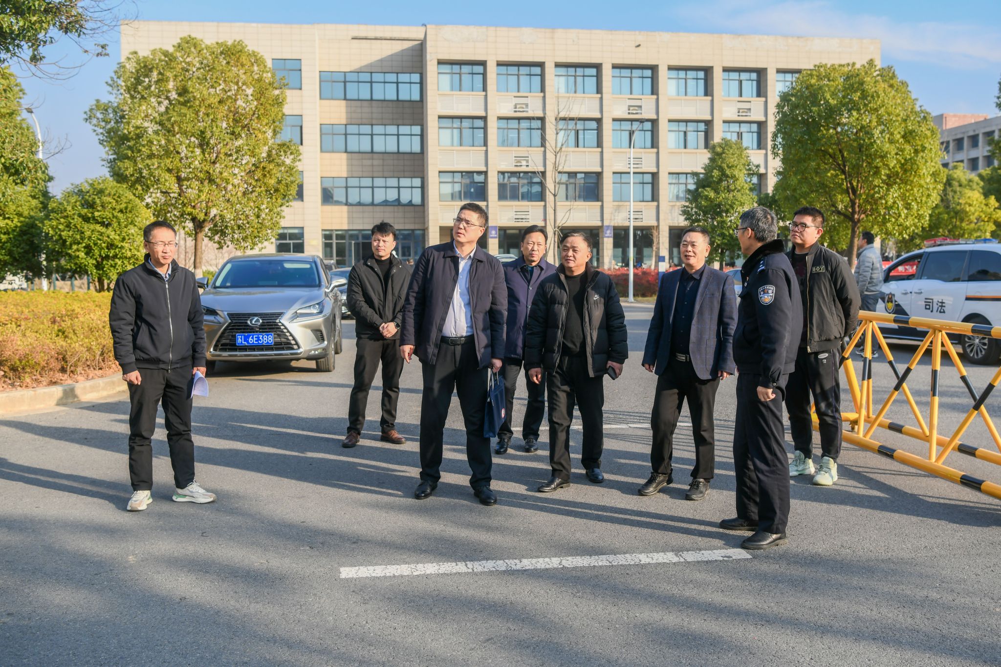 近日,镇江市“化解矛盾风险 维护社会稳定”专项治理工作第四督导组莅临京江学院督导检查。镇江市委政法委副书记邵建海为督察组组长,镇江市司法局党组成员、副局长张旭峰,京江学院党委书记崔金贵,副院长李文新陪同检查。此次督导旨在进一步加强矛盾风险排查化解,确保校园稳定和谐。