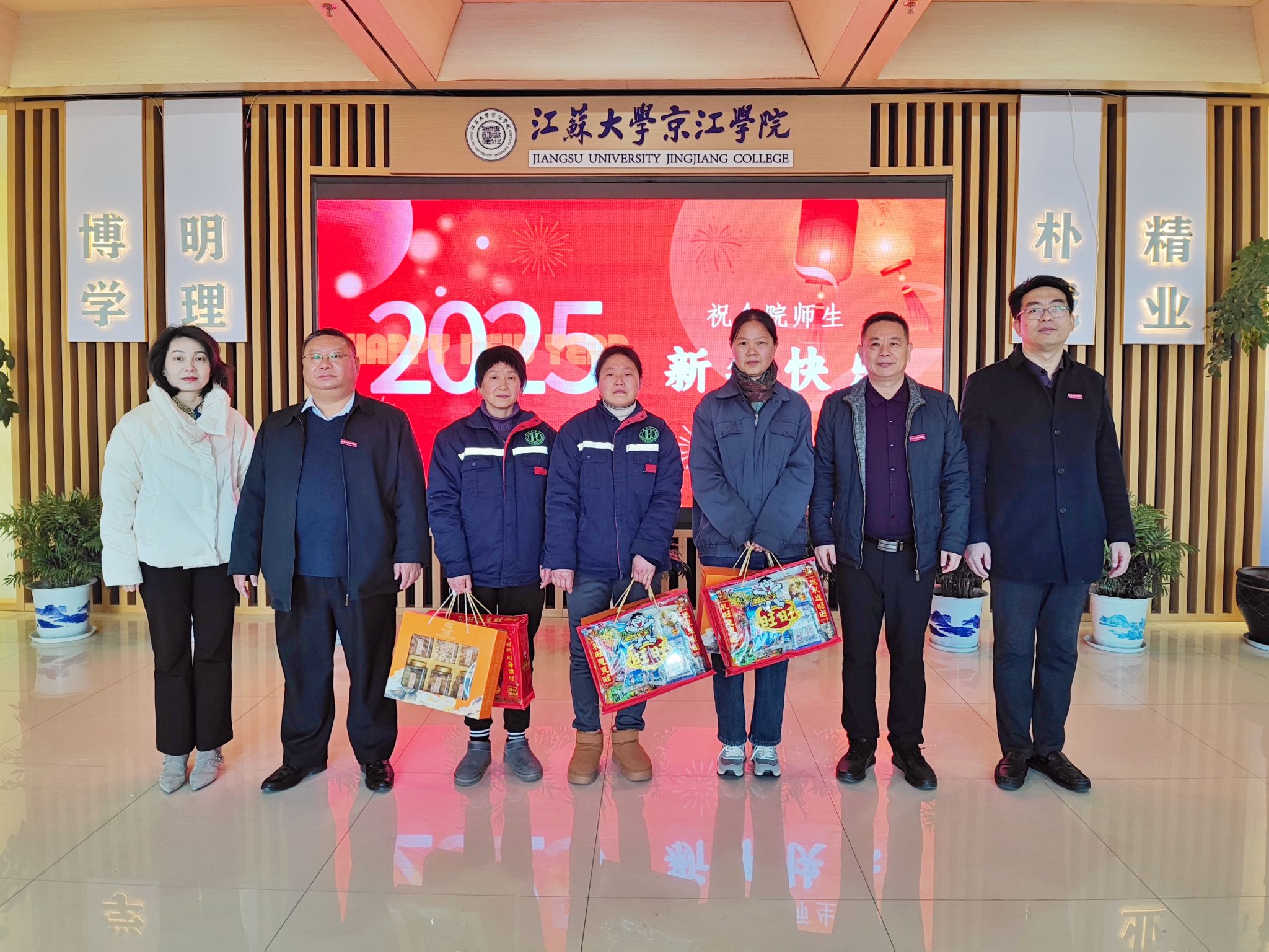 祥龙辞旧岁,金蛇启新程。1月29日,乙巳蛇年正月初一上午,京江学院党委书记崔金贵,院长杜道林,副院长范艳华,党委副书记、纪委书记蒋豪等深入一线看望并慰问了春节期间在岗工作人员,代表学院向大家送去新春祝福和节日慰问。综合办公室、保障服务部相关负责同志陪同慰问。