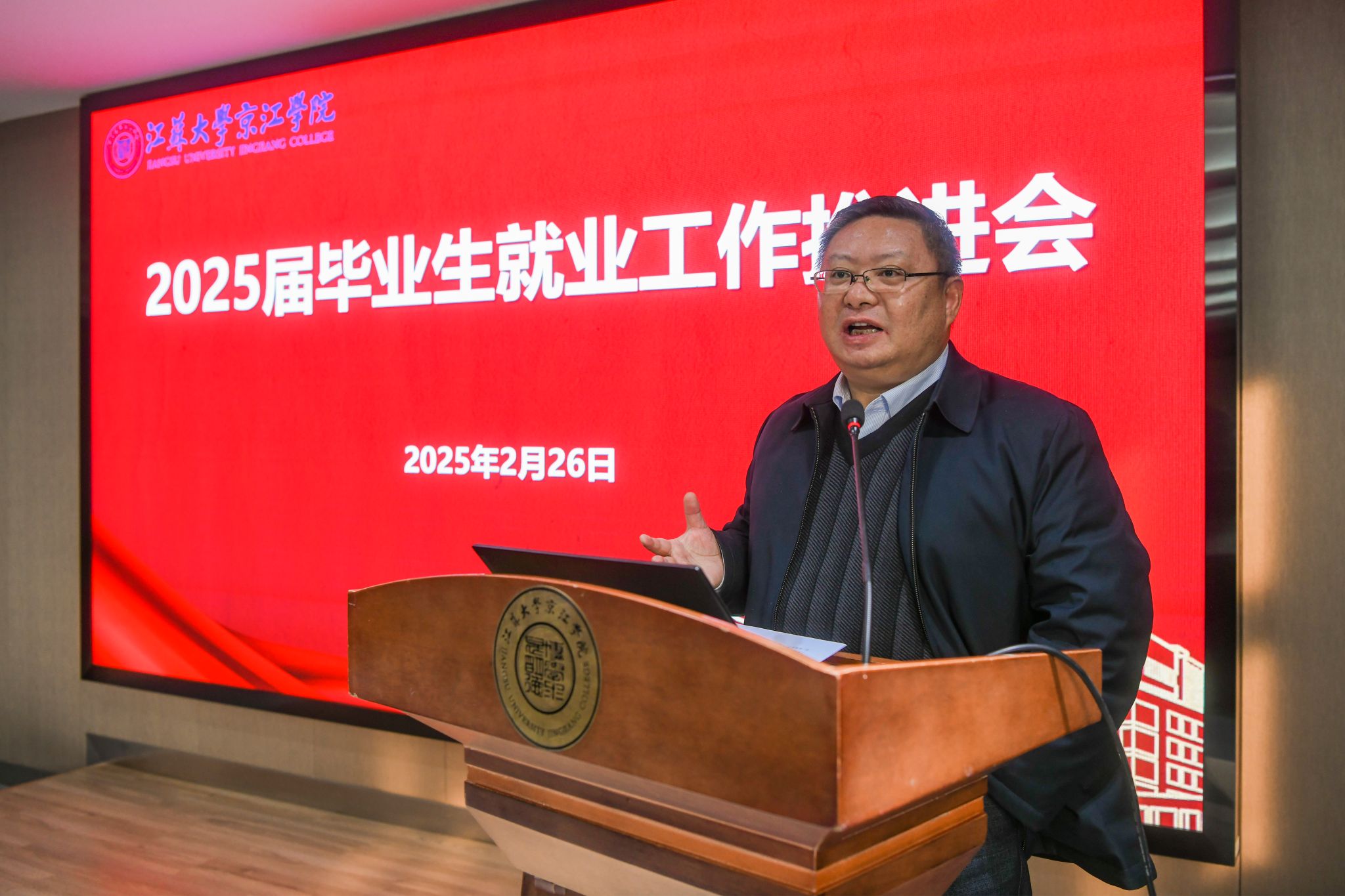 京江学院党委副书记、纪委书记蒋豪全面部署了2025届毕业生就业工作。他要求,一是要提高站位,准确把握就业工作面临的形势,构建多维度稳就业协同机制;二是要狠抓落实,多措并举拓宽就业渠道,为毕业生争取更大的就业支持;三是要精准施策,不断提高就业工作成效,做到逐级压实责任、强化数据监测、健全就业反馈机制。
