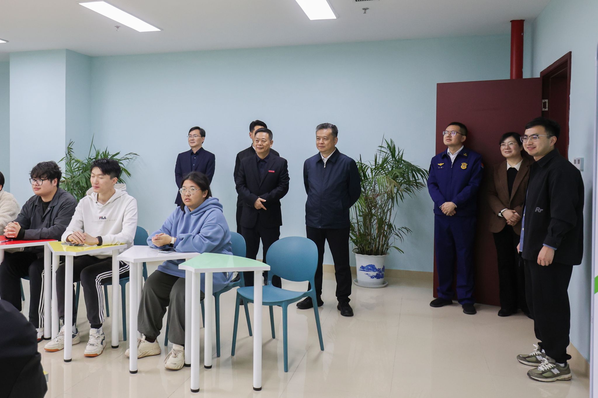 在学院大学生活动中心,学院党委书记崔金贵介绍了学院意识形态安全工作。徐曙海实地参观了心理中心的功能场地,并现场观摩了“自我破壁,情绪解压”为主题的团体辅导活动。