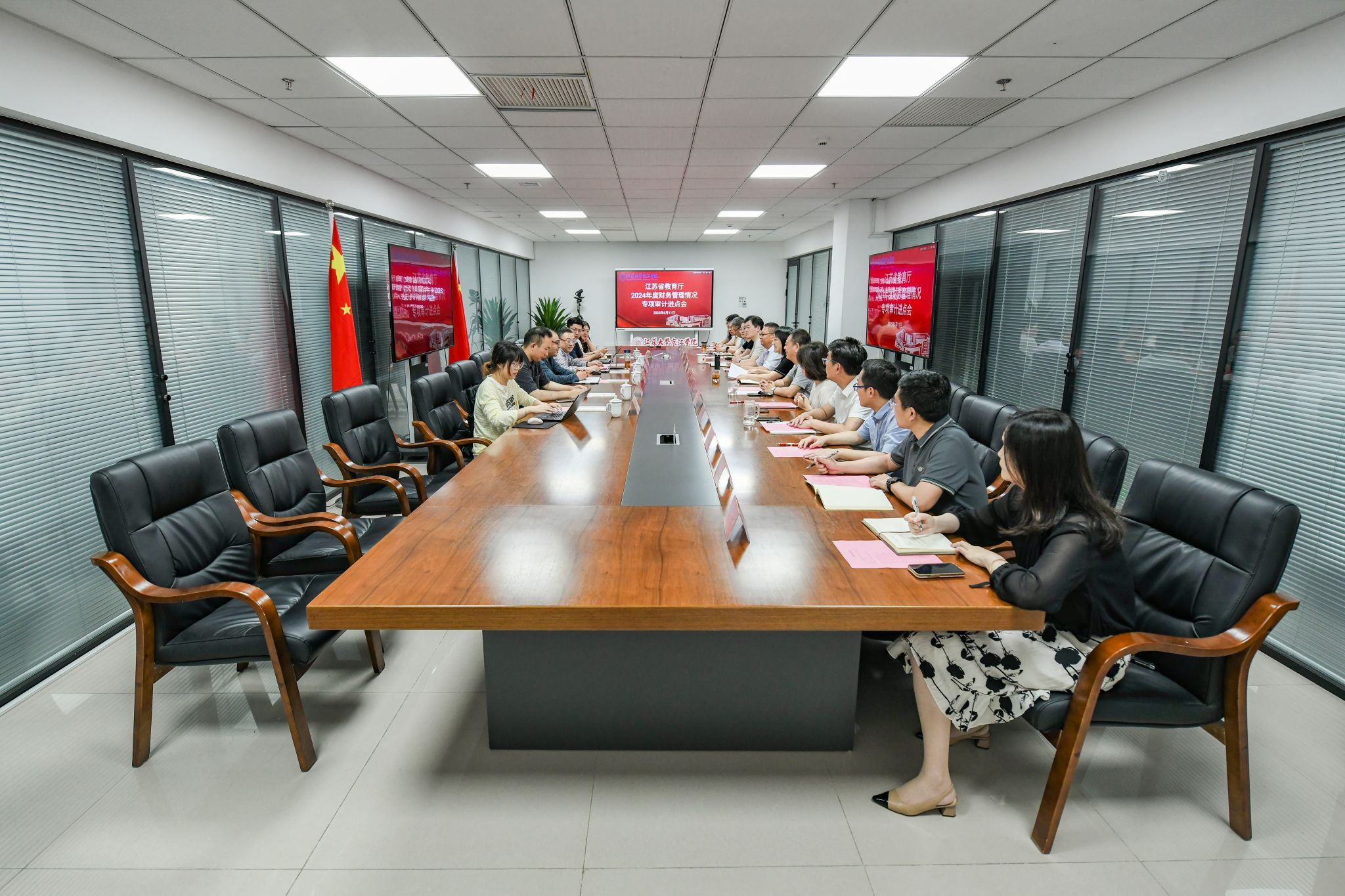 6月11日,省教育厅2024年度民办高校财务管理情况专项审计进点会在京江学院行政楼302召开。省教育厅监督与审计处三级调研员杜盛、省教育厅审计项目负责人刘斌、审计组全体成员,江苏大学副校长陈红、京江学院全体院领导及学院相关职能部门负责人出席会议。会议由学院党委书记崔金贵主持。