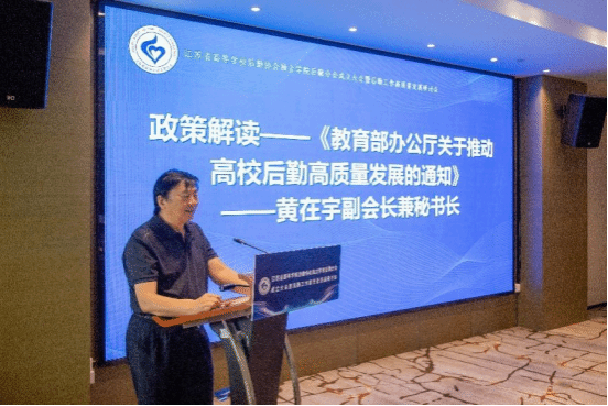 会上,江苏省高等学校后勤协会副会长兼秘书长黄在宇对《教育部办公厅关于推动高校后勤高质量发展的通知》进行了深入细致的政策解读。他详细阐述了通知的核心内容和具体要求,为与会人员提供了清晰的政策指引和行动方向,助力各独立学院在后勤工作中更好地贯彻执行相关政策,提升后勤服务质量和管理水平。