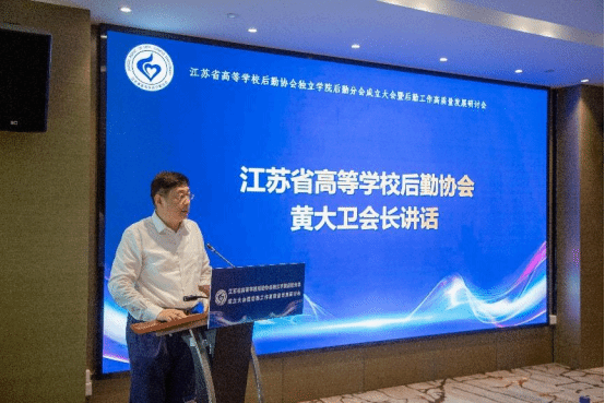 江苏省高等学校后勤协会会长黄大卫出席会议并致辞。黄大卫会长在讲话中指出,独立学院作为江苏高等教育体系的重要组成部分,承担着培养应用型人才、服务地方经济社会发展的重要使命。后勤工作作为学院发展的重要支撑,直接关系到学院的教学科研秩序、师生的学习生活环境以及学院的稳定发展。希望各独立学院以此次后勤分会成立大会暨高质量发展研讨会为契机,聚焦后勤服务保障核心职能,推动独立学院后勤事业标准化、规范化、专业化、智能化发展。