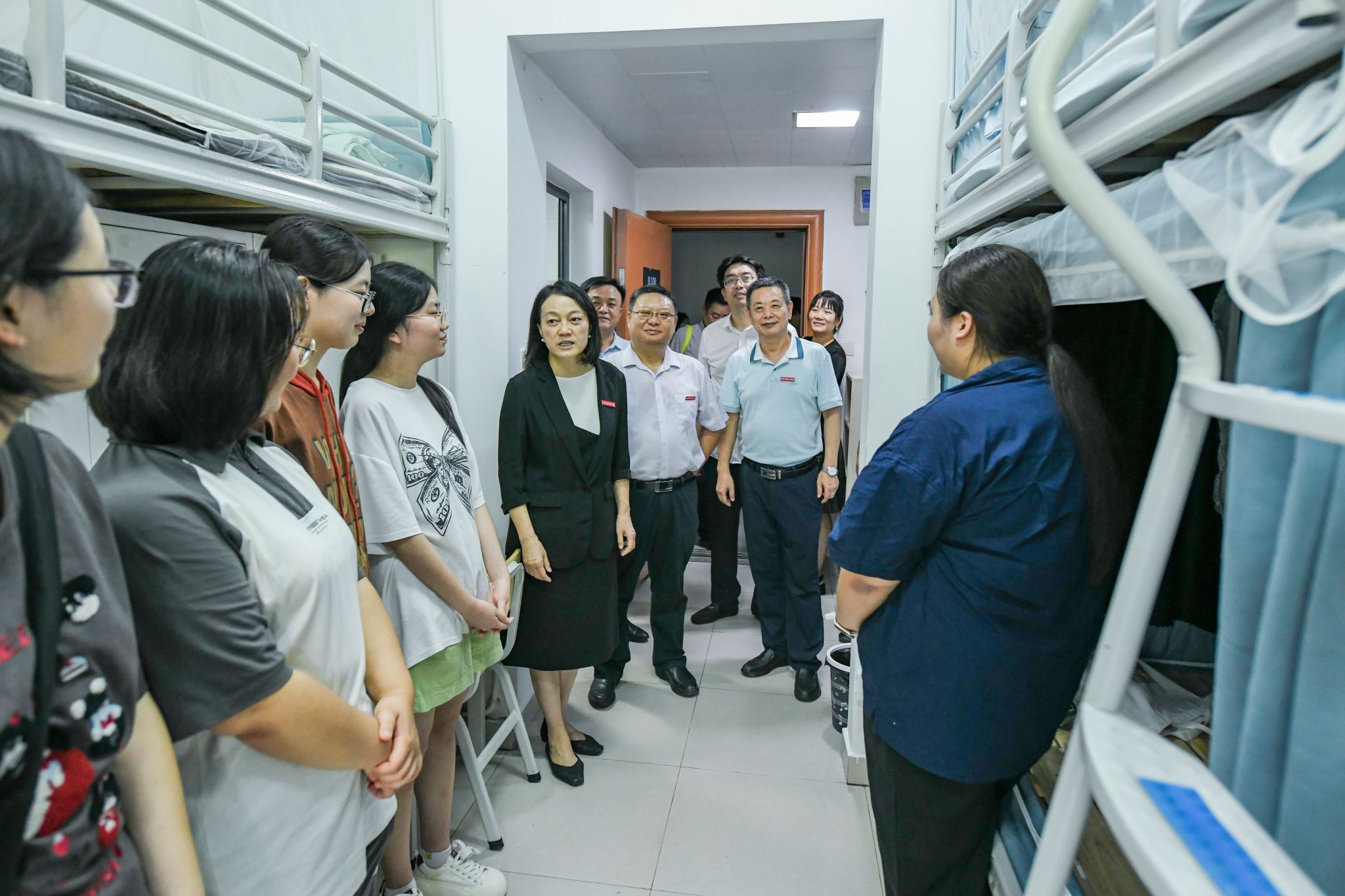 在新生宿舍,院领导与新生进行了亲切交谈。他们勉励新生要珍惜学习机会,尽快适应新环境,做好学业规划,在实践中锤炼专业技能、拓宽知识视野,全面提升综合素养,努力成长为复合型优秀人才。同时,院领导叮嘱同学们要时刻绷紧安全弦,注意用电、防火及出行安全,严格遵守学校各项管理规定,共同维护良好的校园秩序。