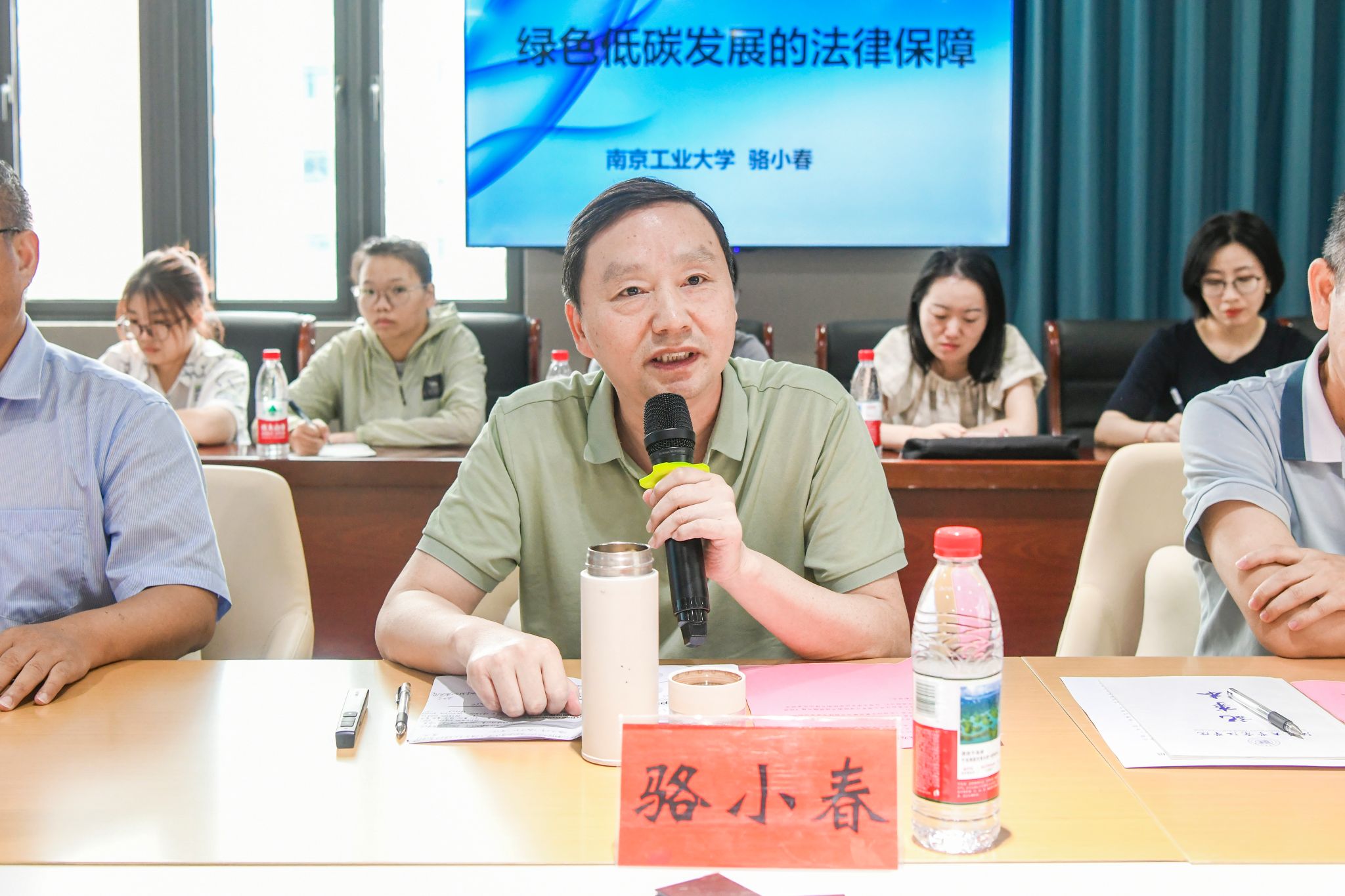骆小春教授作了题为《绿色低碳发展的法律保障》的专题讲座。他从法治视角系统解读了我国生态文明建设相关法律体系与政策导向,内容详实、案例丰富,具有深刻的理论见解和实践意义。他指出,《低碳与可持续发展概论》一书内容全面、前瞻性强,为该领域的教育与实践提供了重要支撑,对推动可持续发展理念融入教学、培养具备低碳思维和绿色技能的新时代人才具有积极贡献。在研讨交流环节,师生围绕低碳发展路径、绿色技术应用、可持续发展教育等话题与专家展开深入讨论。