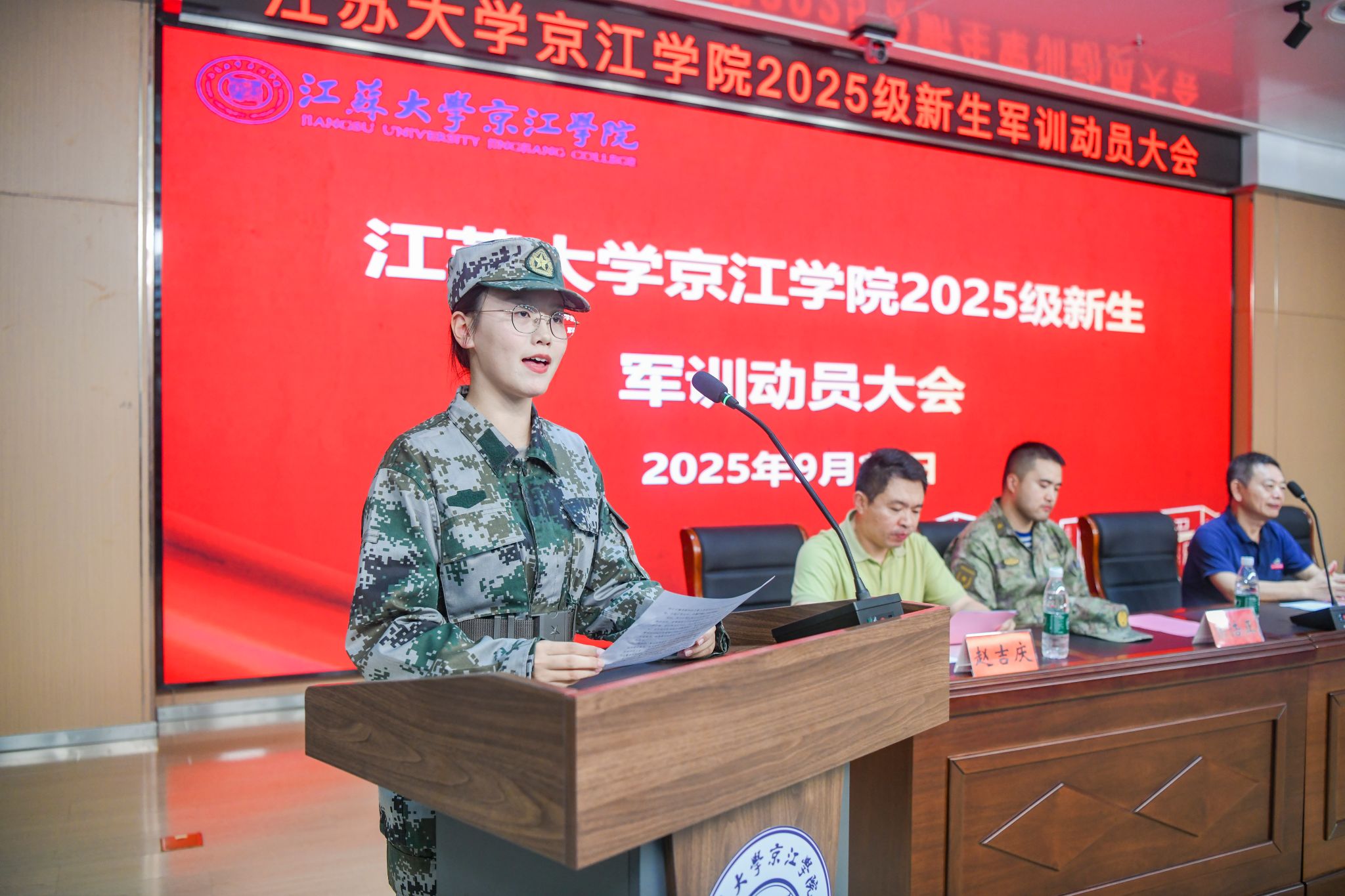 9月16日下午,京江学院在学术交流中心第四报告厅召开2025级新生军训动员大会。京江学院党委书记崔金贵、中国人民解放军32521部队保障处处长程扬、军训工作领导小组成员、承训部队全体教官、各二级学院(部)党总支书记、全体新生辅导员及参训学员代表参加了动员大会。动员大会在庄严的国歌声中拉开帷幕,大会由京江学院党委副书记、纪委书记蒋豪主持。