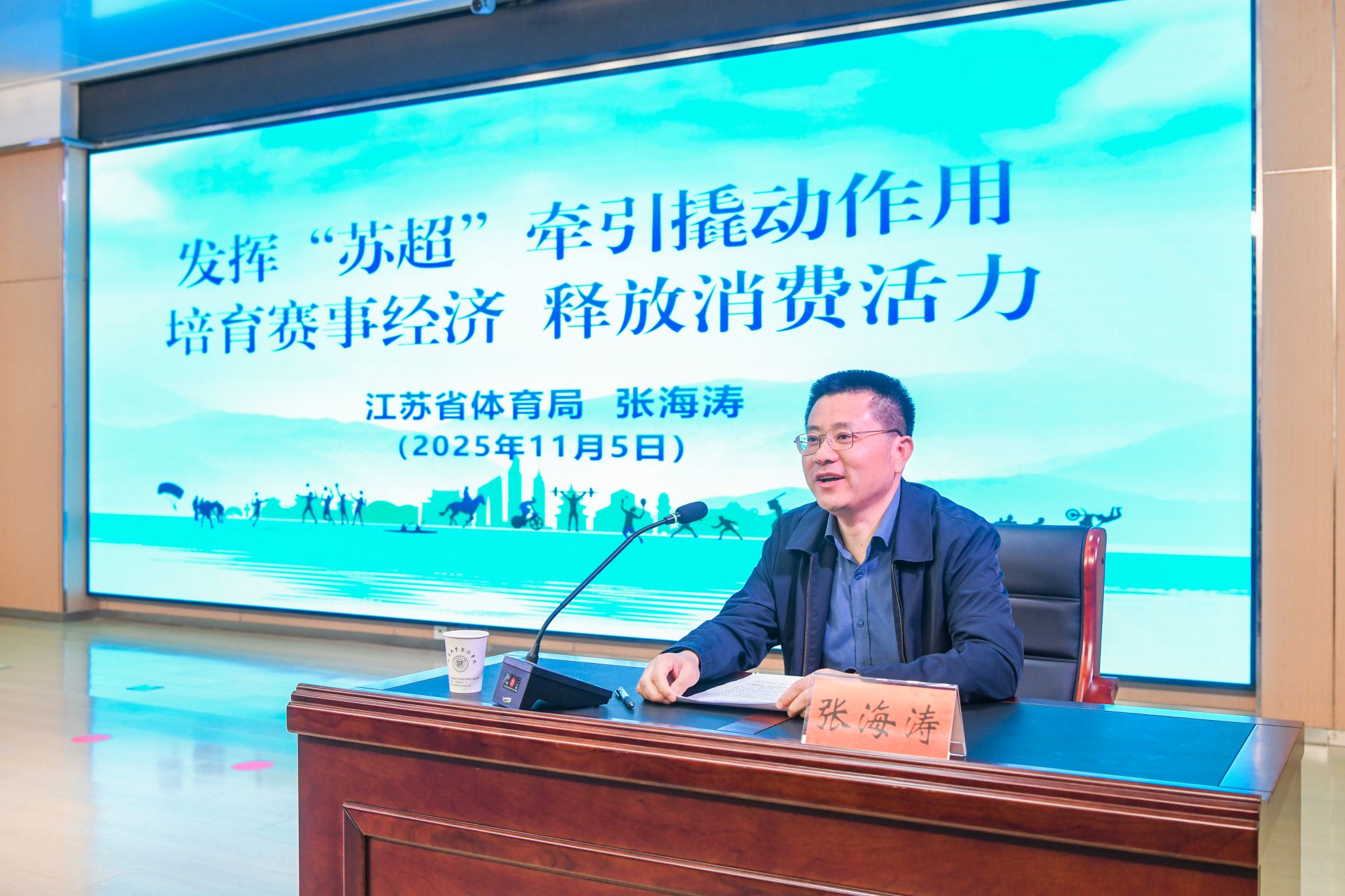 为深入贯彻新发展理念,推动体育产业与人才培养深度融合,引导青年学子把握时代发展脉搏,11月5日,京江学院特邀江苏省体育局党组成员、副局长张海涛在学术交流中心第四报告厅以《发挥“苏超”牵引撬动作用 培育赛事经济 释放消费活力》为题,为300余名师生代表带来了一堂兼具理论深度与实践温度的专题思政课。