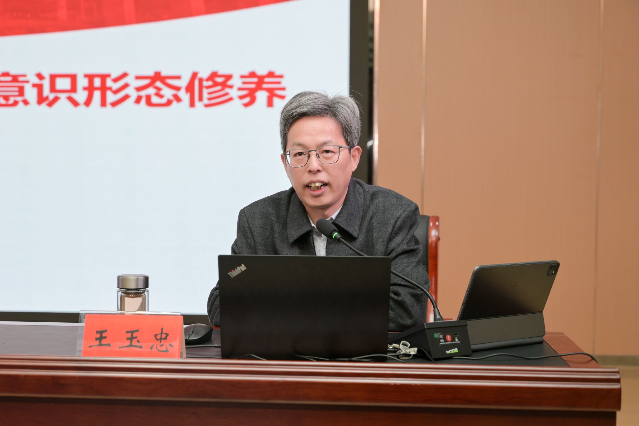 王玉忠以《明辨 笃行 新时代青年学生的意识形态修养》为题,用理论和真实事例阐释意识形态工作的极端重要性和风险挑战。意识形态安全深刻影响着大学生思想观念的塑造、价值取向的选择,与个人未来发展和国家前途命运紧密相连。他希望培训学员拧紧思想总开关,做意识形态的坚定守护者和数字时代的清醒者。