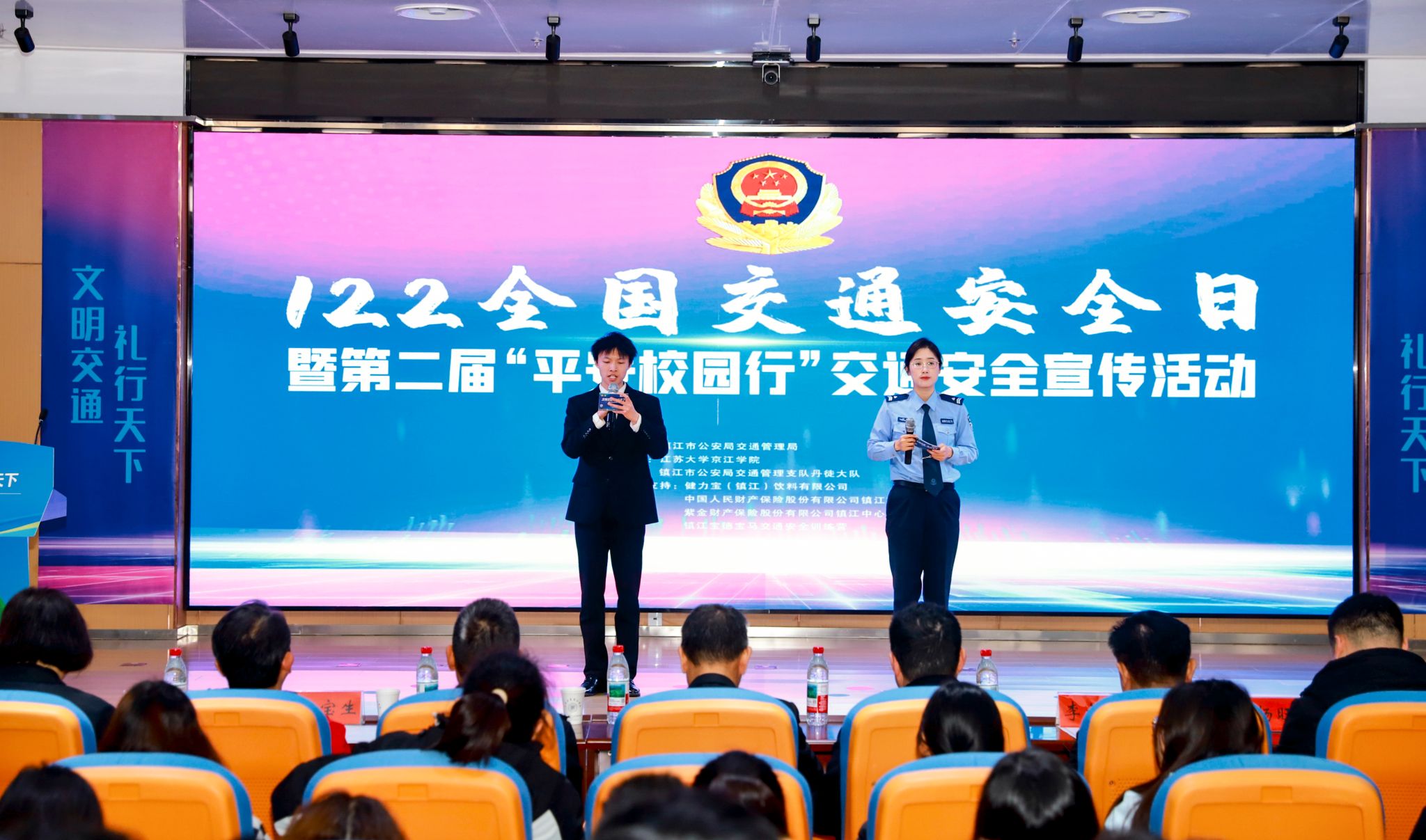 12月2日,在第十四个“全国交通安全日”来临之际,京江学院在学术交流中心举办12·2全国交通安全日暨第二届“平安校园行”交通安全宣传活动。活动以“文明交通、礼行天下”为主题,通过警校联动、师生参与、互动体验等形式,筑牢校园安全防线,推动文明交通理念深入人心。镇江市公安局相关部门领导、高校代表、企业嘉宾及京江学院师生代表齐聚现场,共同参与此次安全宣传盛会。