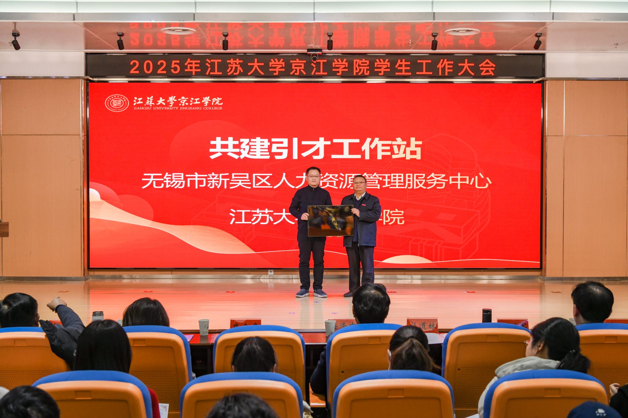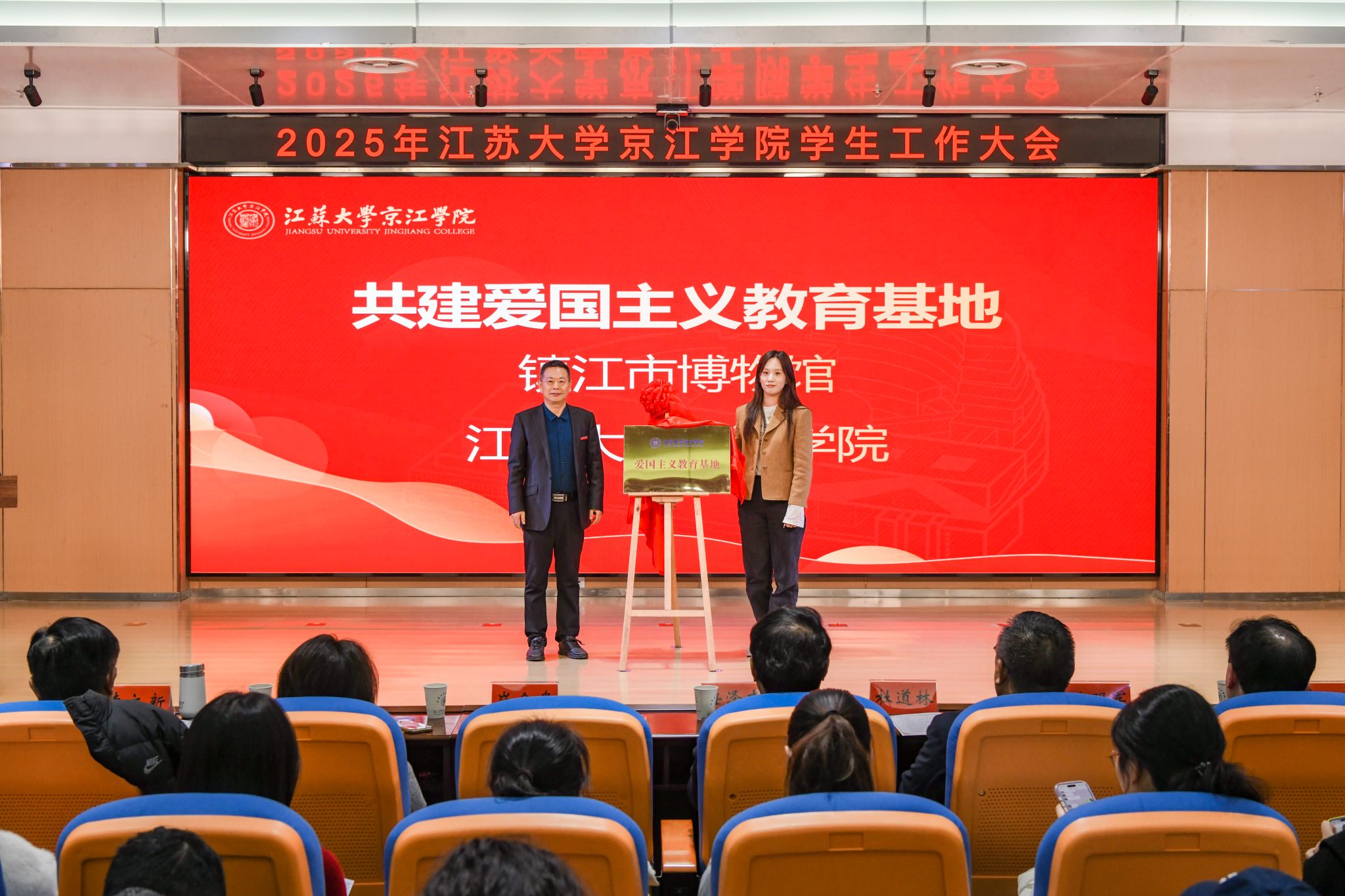 为拓展育人平台、深化校地校企合作,京江学院与多家单位现场举行了揭牌、授牌仪式:与镇江市博物馆共建“爱国主义教育基地”;与共青团镇江市丹徒区委员会共建“大学生乡村振兴志愿服务平台”;与马鞍山市人才综合服务中心、盐城市盐都区人才服务中心、无锡市新吴区人力资源管理服务中心共建“引才工作站”;与小米集团(江苏)产教融合基地、南京网博计算机软件系统有限公司、江苏鼎胜新能源材料股份有限公司、镇江三新供电服务有限公司、北京学而思教育科技有限公司镇江分公司共建“就业育人实践基地”。