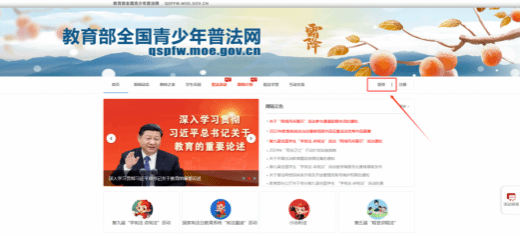 方式一:进入教育部全国青少年普法(https://qspfw.moe.gov.cn/),通过右上角登录按钮进入登录页面。