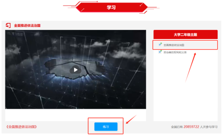 ②观看学习视频,观看完成后点击练习。
