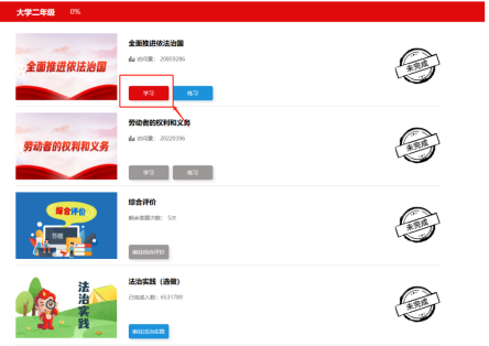 ①进入个人页面,点击开始学习,选择对应板块,进入学习页面。