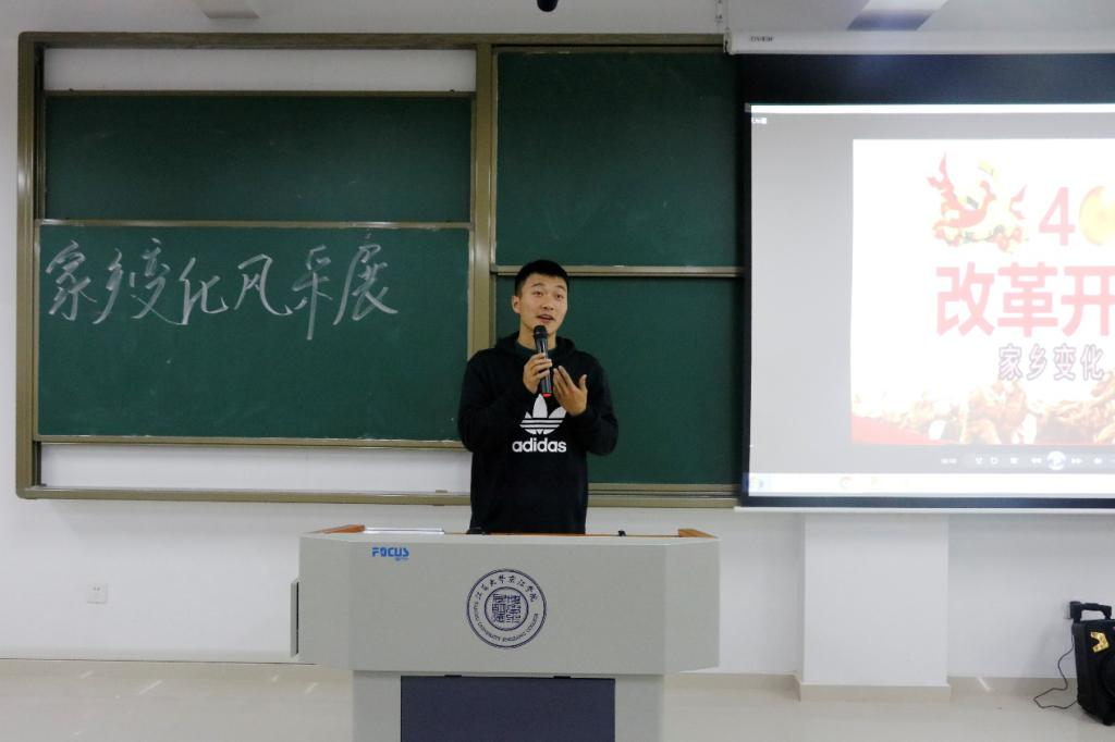 活动伊始,主持人上台致开幕辞并介绍本次活动主题与规则。随后,选手按照抽签顺序上台答辩,他们利用多媒体设备播放家乡在建国初期与如今的图片、视频,无锡、南京、深圳等地40年间一处处高楼拔地而起,道路四通八达,改革开放政策带来的巨大影响和鲜明对比极大的震撼了在场观众。场中的小游戏环节也受到了同学们的积极响应,一位来自广东的同学还在现场教大家学习粤语,一时间闽南语、粤语、吴侬软语等诸多方言在会场响起。最终,活动在一片欢声笑语中迎来尾声。