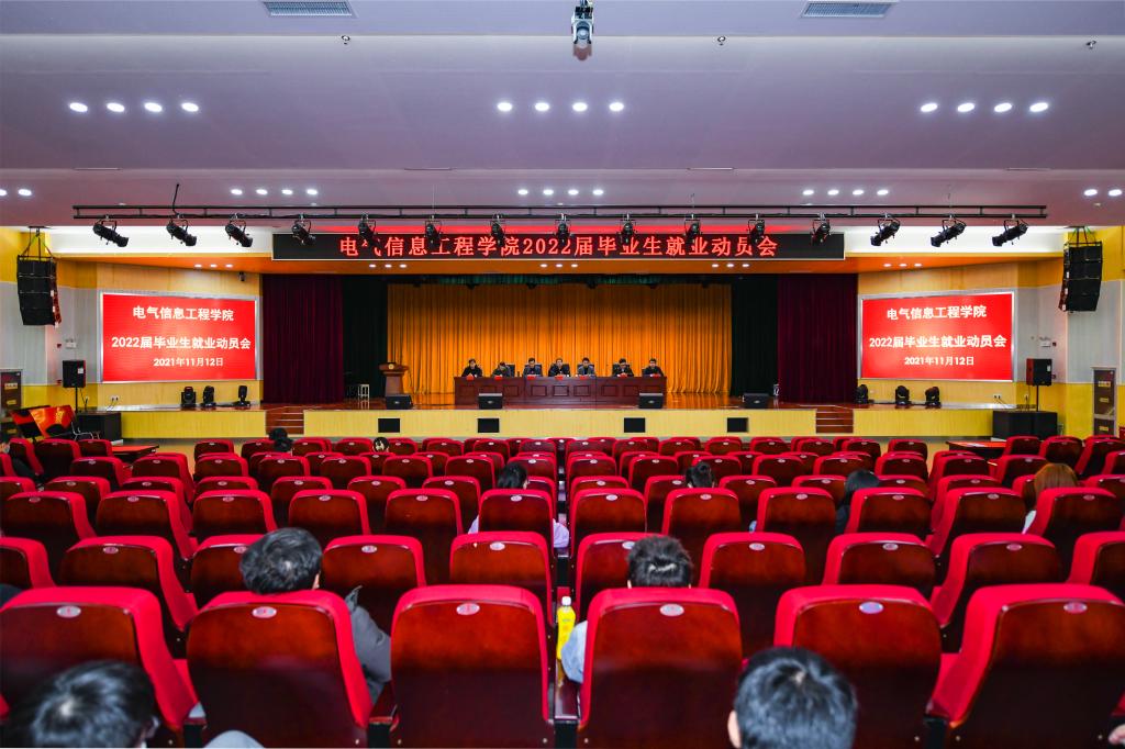 为进一步转变2022届毕业生就业观念、提升就业能力,引导毕业生认清就业形势,增强就业紧迫感,实现更高质量就业,11月12日电气信息工程学院在大学生活动中心多功能报告厅举办2022届毕业生就业动员会。学院党委副书记、副院长吴立平,电气信息工程学院党总支书记赵吉庆,电气信息工程学院辅导员出席会议。会议由电气信息工程学院就业工作负责人朱英凯主持。