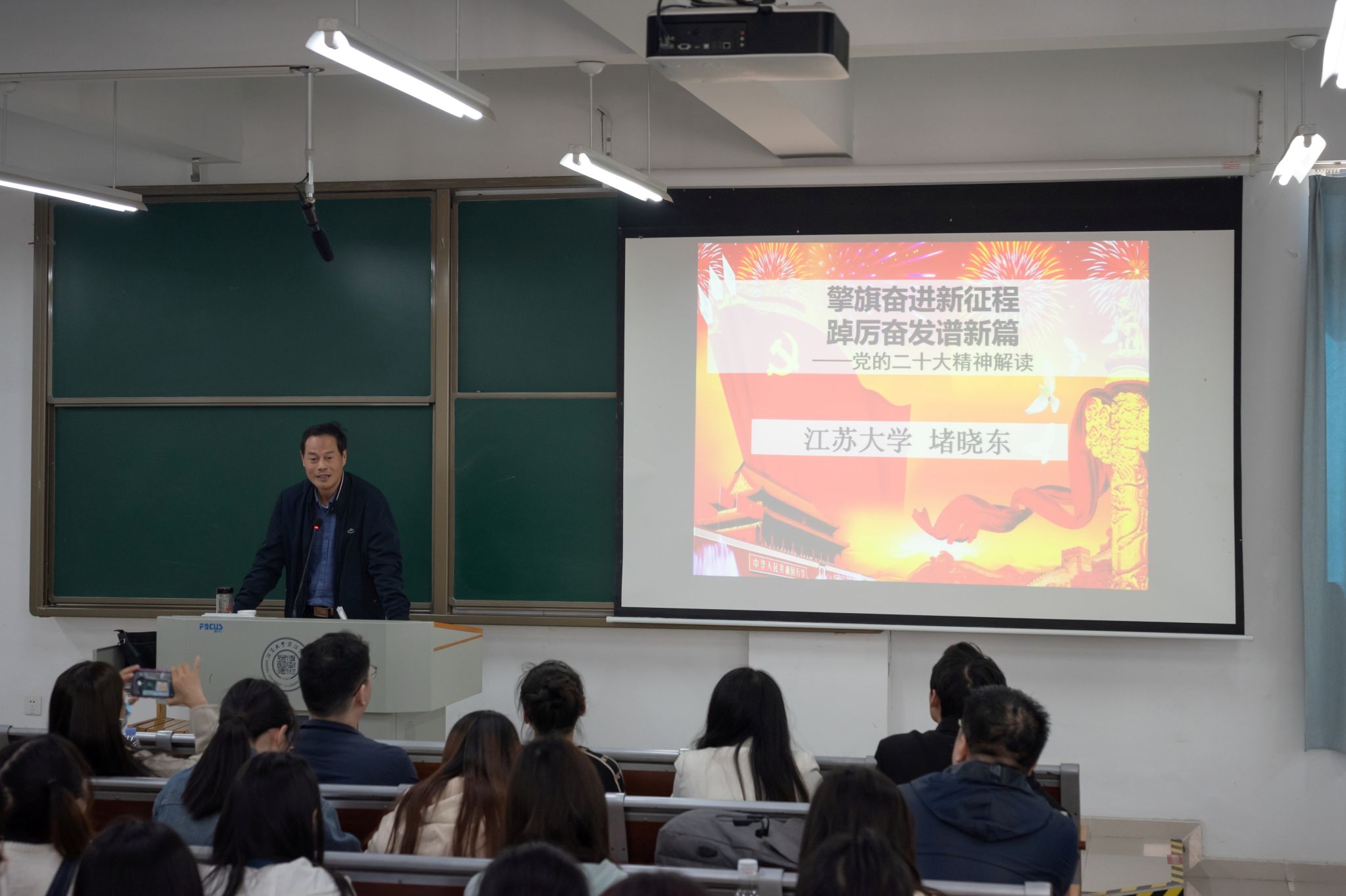讲座围绕中国共产党历次全国代表大会基本情况、党的二十大时代背景和主要精神三个方面展开,重点解读了党的二十大的主题、中国共产党的中心任务等。堵晓东强调,当代大学生学习党的二十大精神要正确认识时代责任和历史使命,以民族复兴为己任,争当社会主义建设者和接班人。