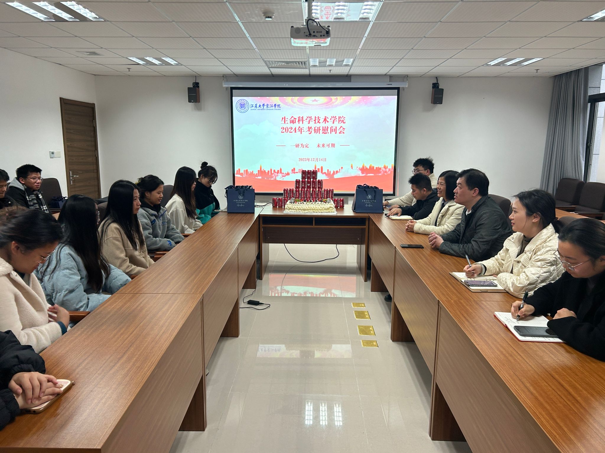 12月14日下午,生命科学技术学院在行政楼106会议室举行2024届本科生考研慰问活动。京江学院副院长陈明军、生命科学技术学院党总支书记柳春华及全体辅导员出席了本次活动。