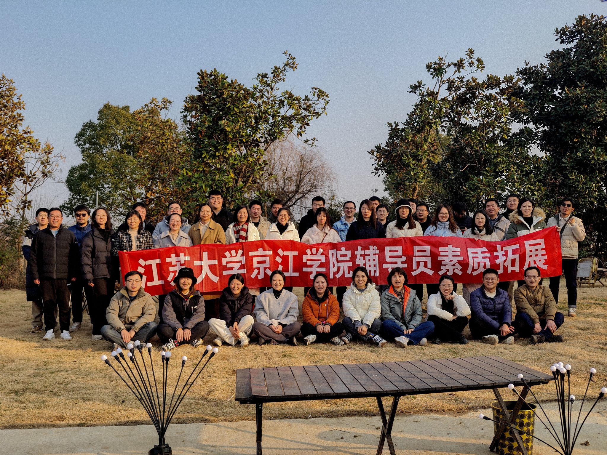 为进一步增进沟通协作能力,提升工作效能,增强辅导员队伍的凝聚力和创造力,2023年12月28日,京江学院在镇江市谷湖创意园开展了以“凝心聚力共前行,情暖深冬悦身心”为主题的辅导员素质拓展活动。