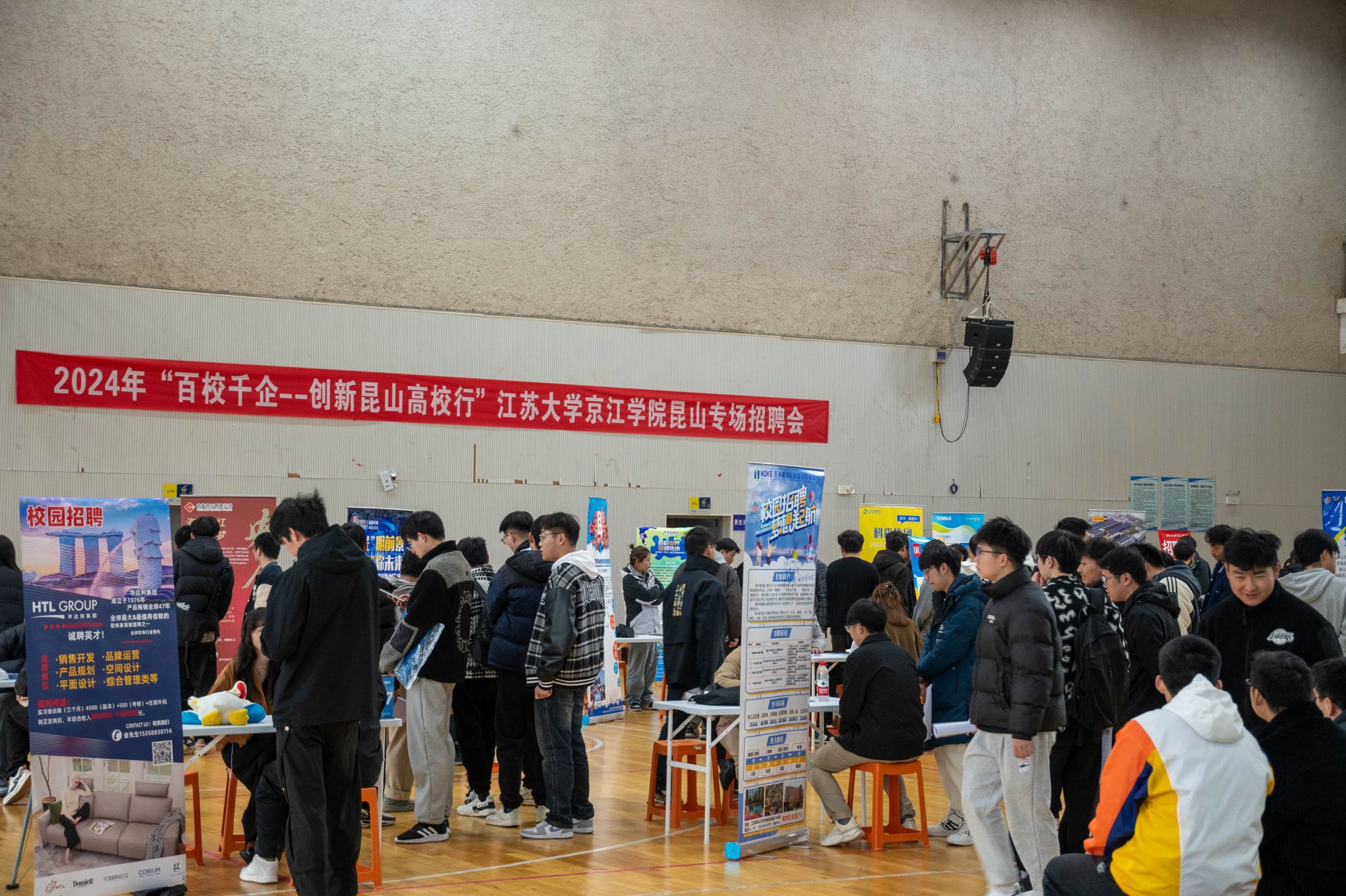 3月14日下午,由京江学院与昆山人力资源市场联合举办的2024年“百校千企—创新昆山高校行”江苏大学京江学院昆山专场招聘会在体育活动中心举行。昆山人力资源市场干事熊亮、各二级学院(部)党总支书记、毕业班辅导员及2024届毕业生参加招聘会。