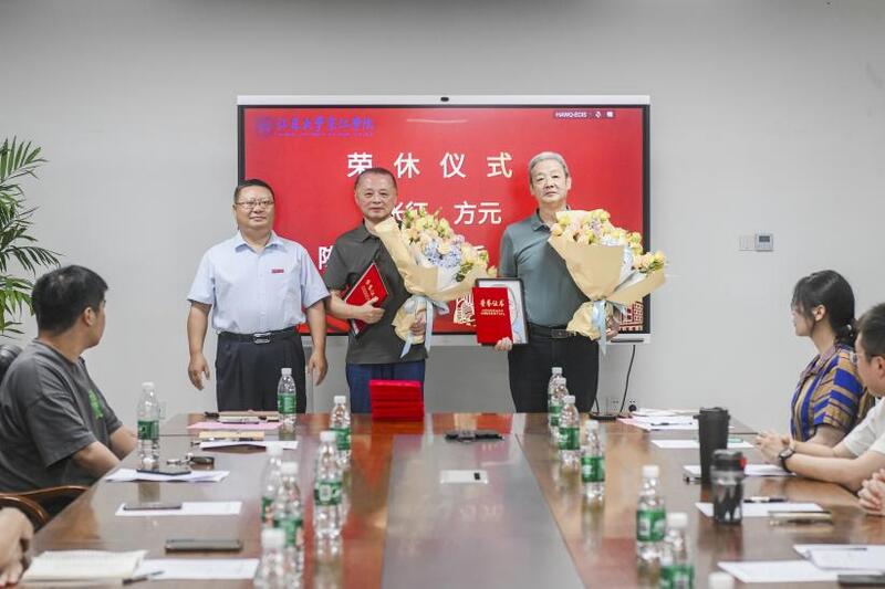 学院邀请退休教师再回校园,举办荣休仪式,致敬芳华,礼赞荣光。杜道林为两位荣休教师代表张征老师、方元老师献花,感谢他们为学院发展做出的重要贡献。两位荣休教师代表分别发言,回顾自己的教育生涯,分享自己的成长和收获。