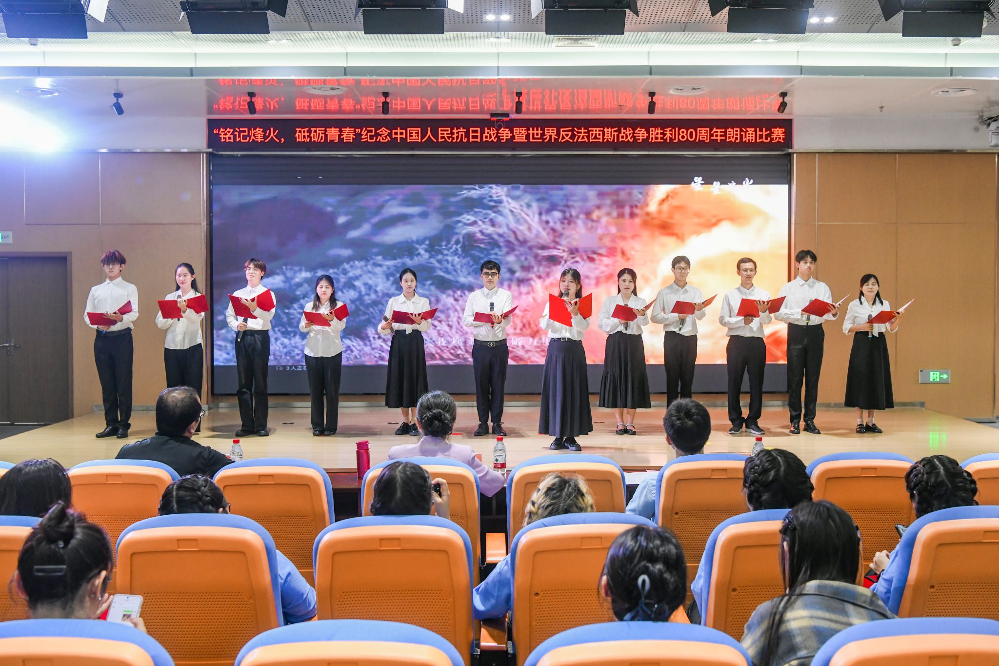 本次朗诵比赛不仅为师生提供了一个展示才华、抒发情怀的舞台,更是一堂生动而深刻的爱国主义教育课。它激励着广大师生从伟大的抗战精神中汲取前行力量,将缅怀之情转化为奋进动力,为实现中华民族伟大复兴贡献青春力量。