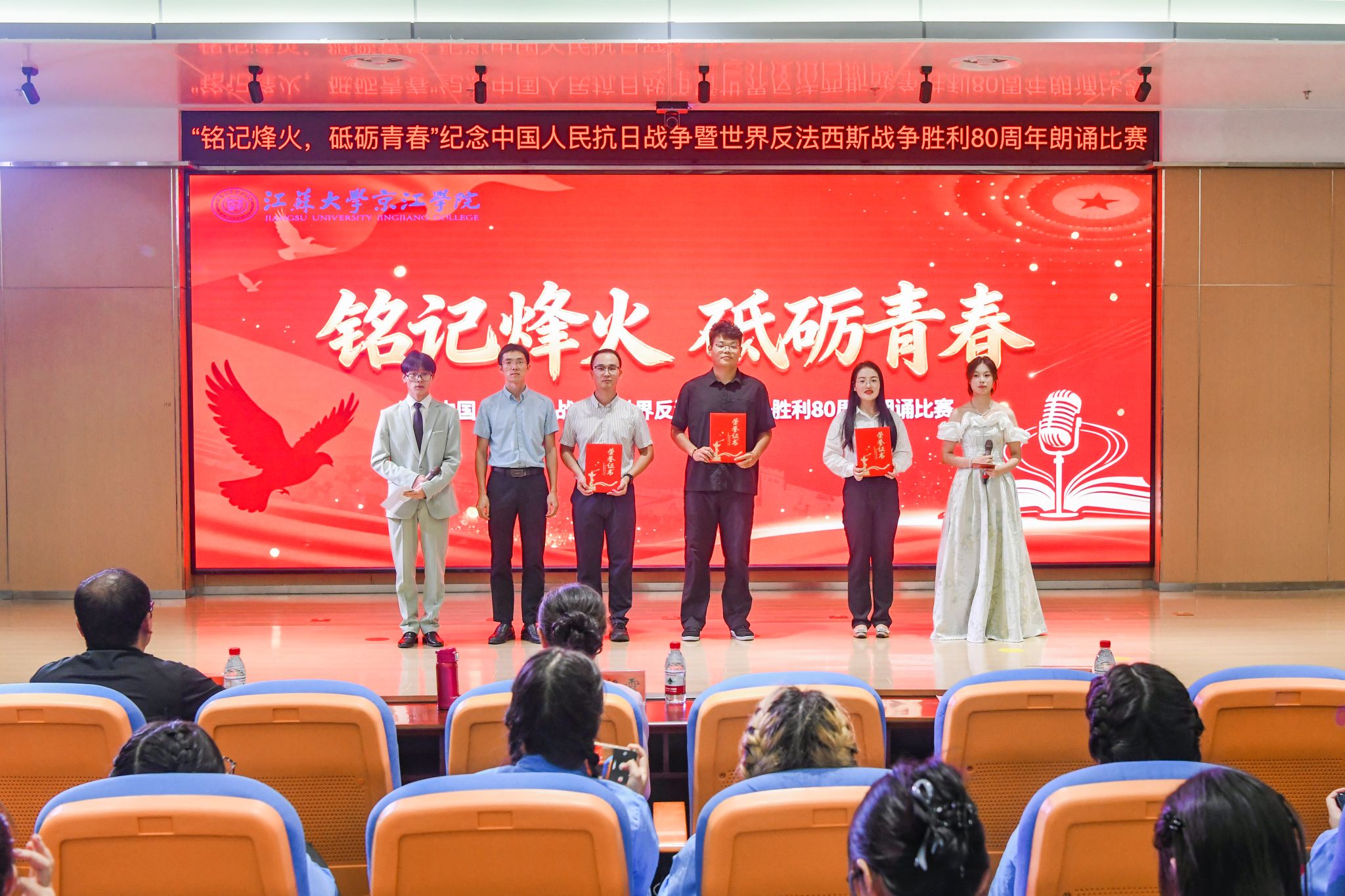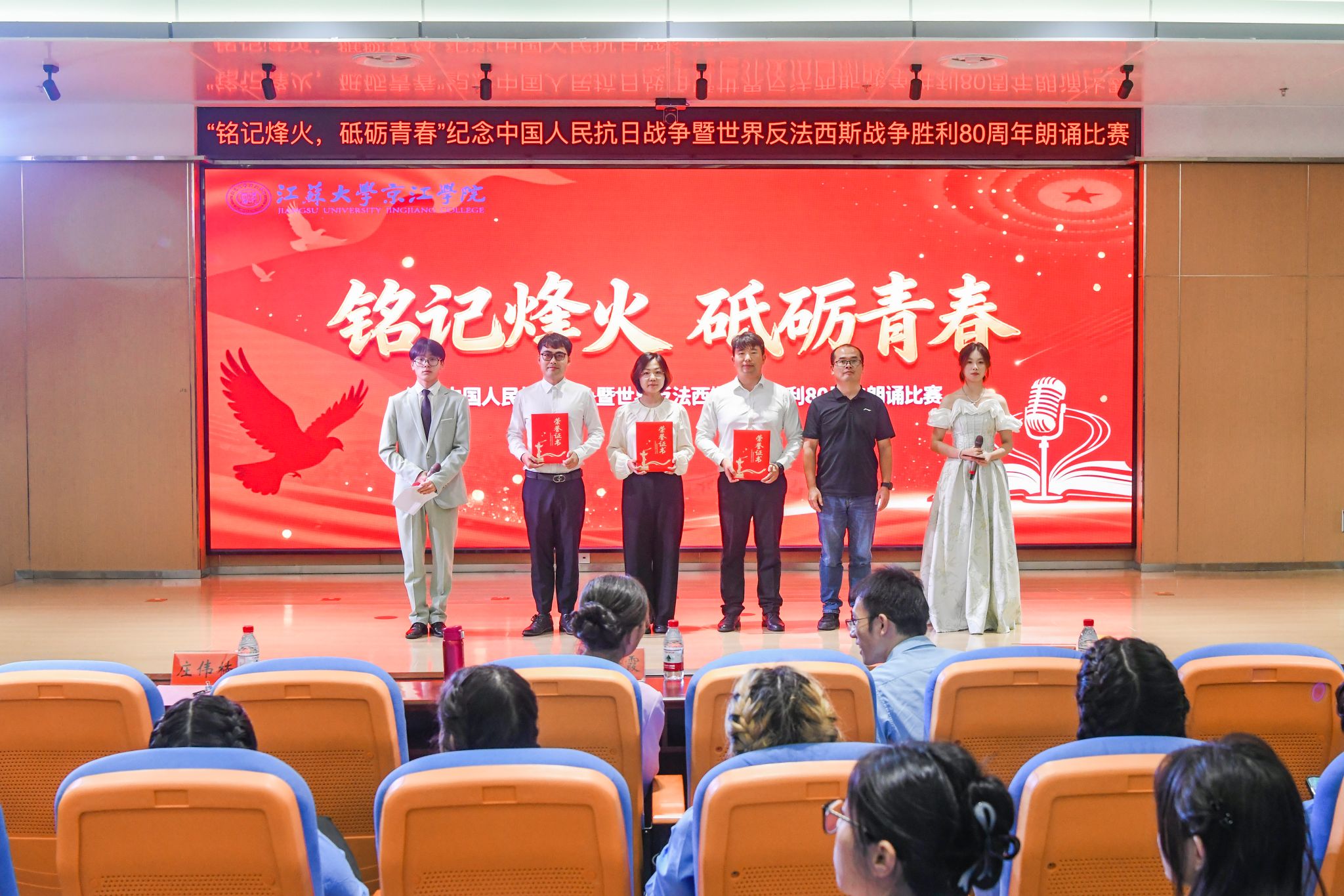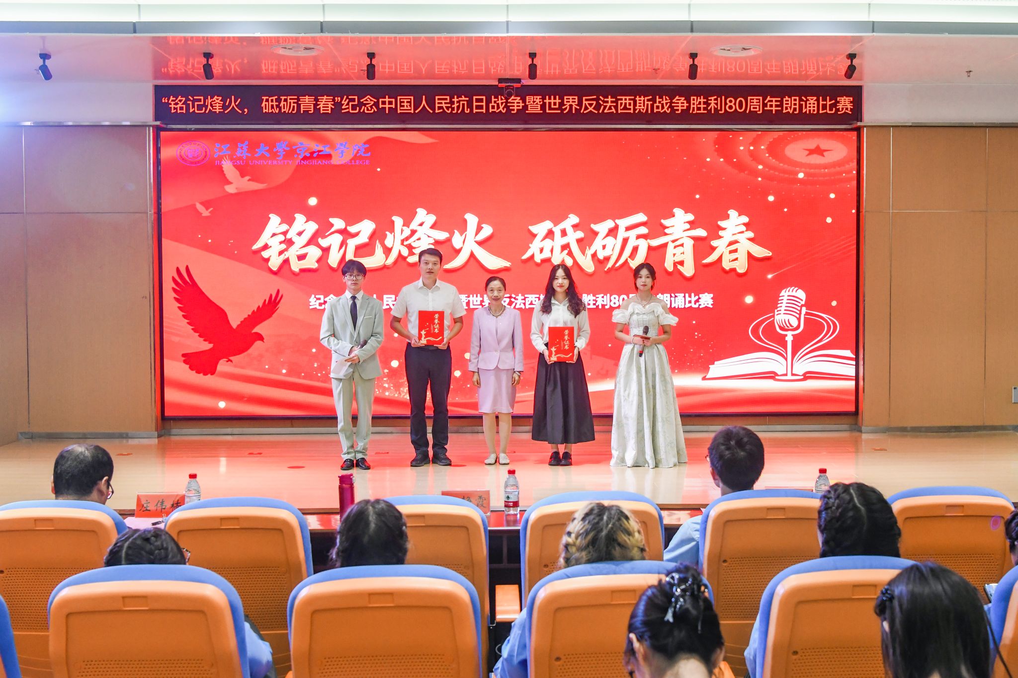 为缅怀革命先辈的丰功伟绩,激励全院师生在新时代新征程上奋勇前行。9月28日下午,江苏大学京江学院在学术交流中心4号报告厅举办“铭记烽火 砥砺青春”主题朗诵比赛。